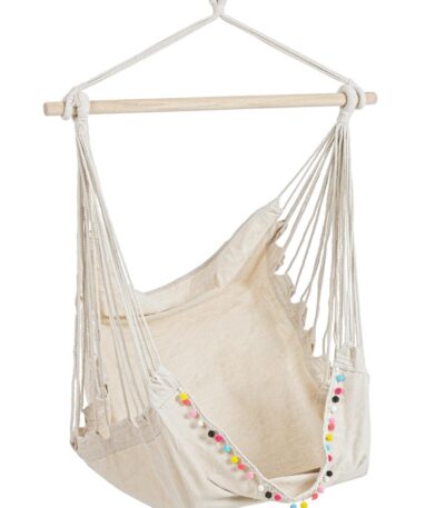 Hamac tip scaun Pon-Pon, Bizzotto, 100×135 cm, lemn masiv/policoton, bej