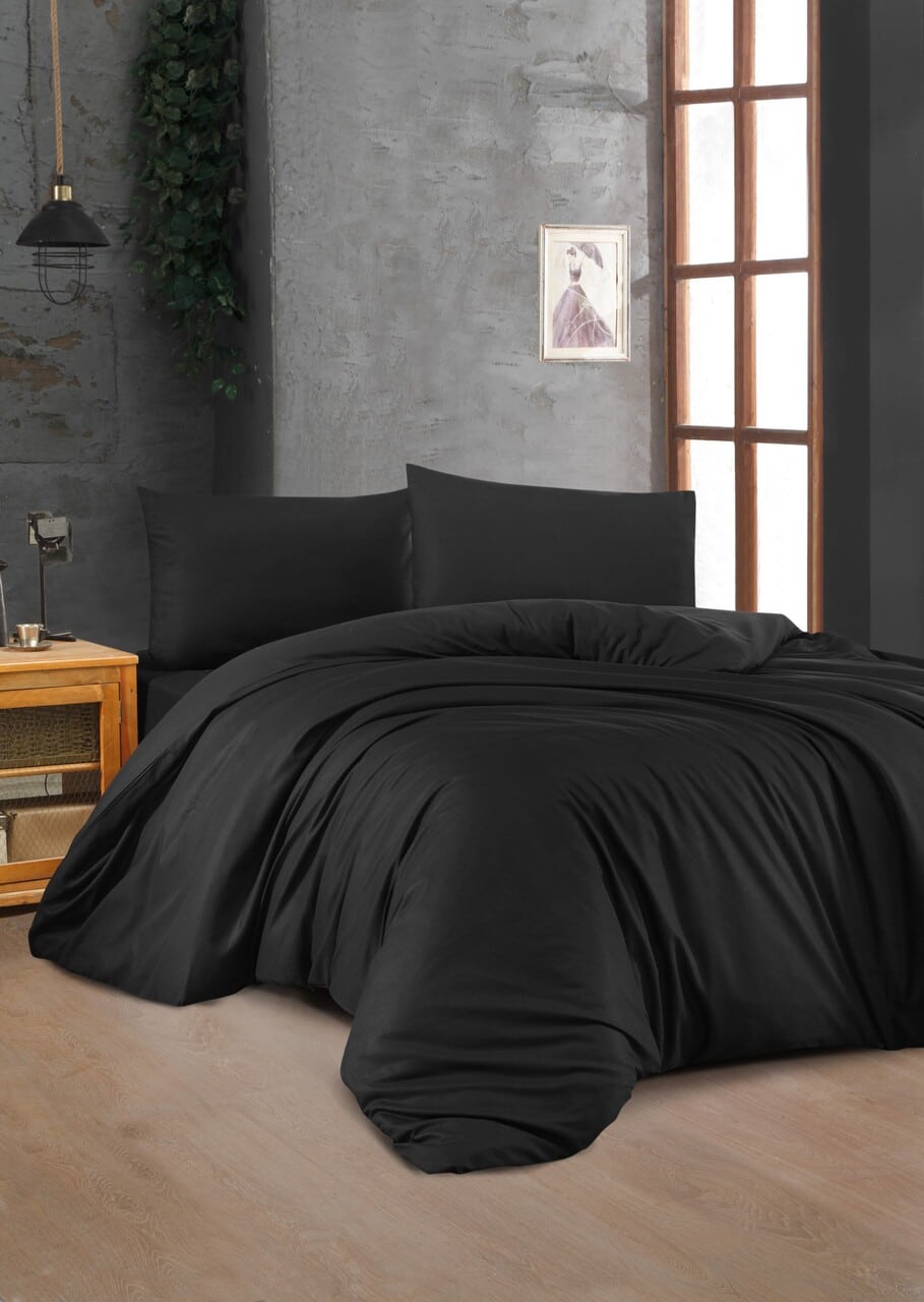 Lenjerie de pat dubla King, 3 piese, 220×240 cm, 60×60 cm, 100% bumbac ranforce, Patik, Black, negru
