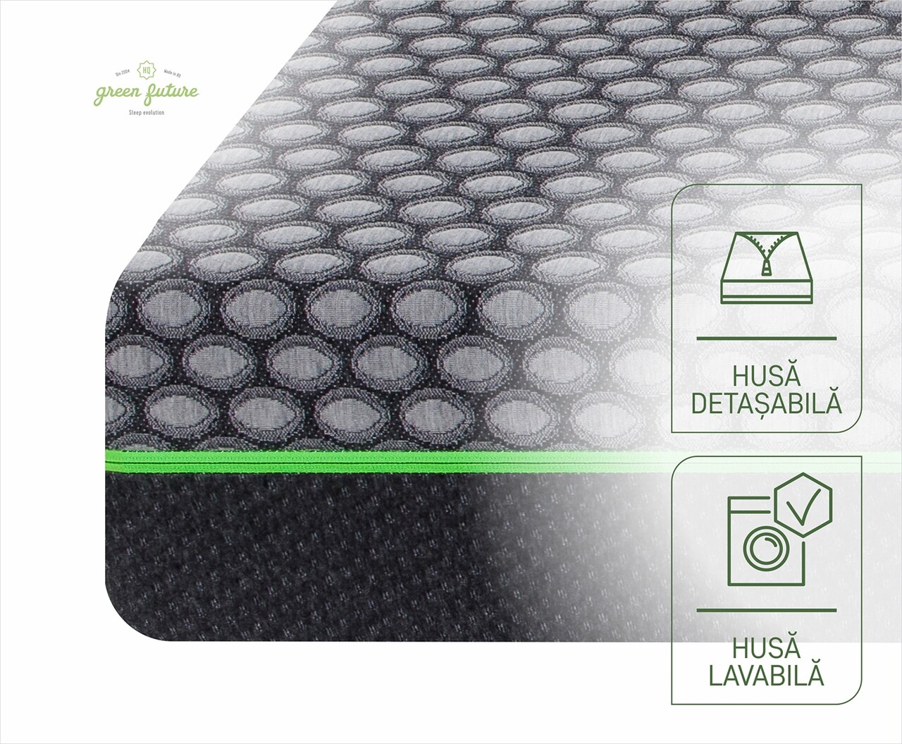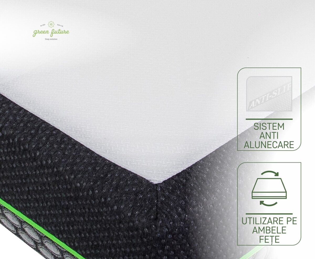 Stratul generos de confort din spuma cu memorie imbunatateste efectul spumei Green Form HD. Ajuta la diminuarea punctelor de presiune avand ca efect relaxarea muschilor si o circulatie sangvina sanatoasa. Spuma poliuretanica de calitate superioara ofera stabilitate ridicata si zero deranj pentru partenerul de somn.