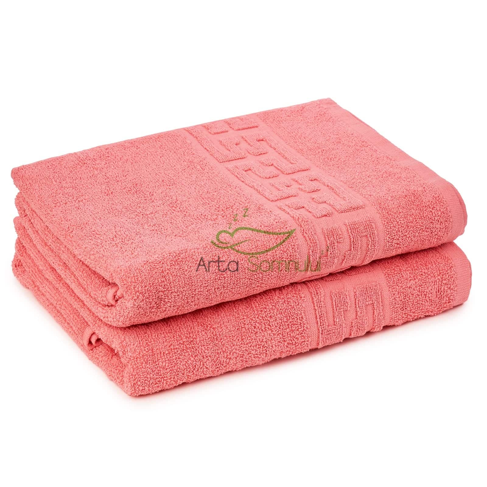 Set 3 Prosoape 70×130 cm Bumbac 500 gr/mp Greek Border Coral
