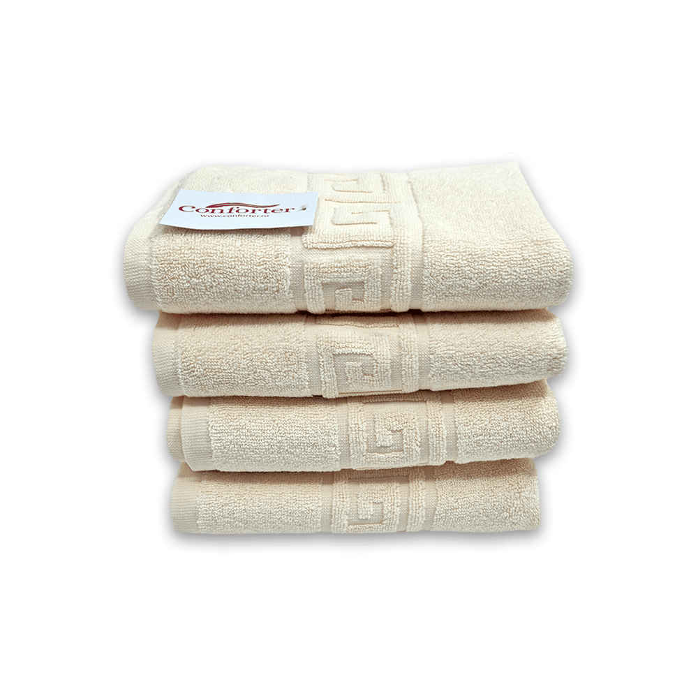 Caracteristici Set 4 Prosoape Bumbac 50×90cm 550 gr/mp Greek Border Ivory