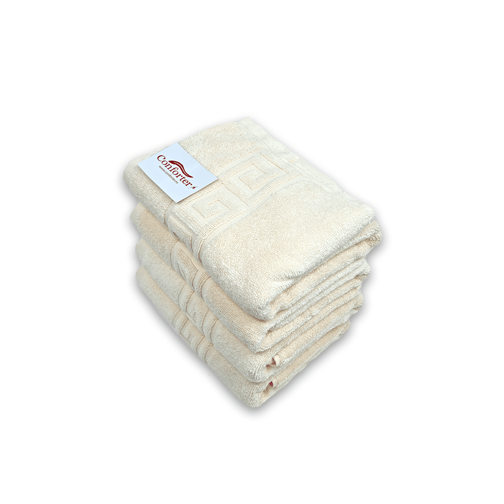 Set 4 Prosoape Bumbac 50×90cm 550 gr/mp Greek Border Ivory ofera o experienta de neuitat, precum intr-un hotel de 5 stele, de fiecare data cand este utilizat. Modelul prin care sunt decorate prosoapele la baza, le confera un aer sofisticat, iar calitatea materialului asigura rezistente in timp. Chiar si dupa multiple spalari, culorile nu se vor estompa, iar materialul nu se va subtia sau scamosa.
