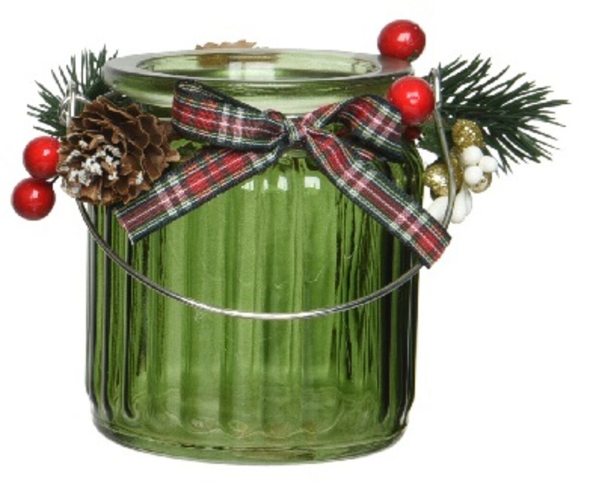Suport pentru lumanare Lines pattern, Decoris, 8×10 cm, sticla, verde